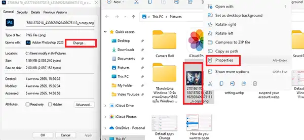 หรืออีกหนึ่งวิธีง่ายๆ ก็คือให้คลิกขวาที่รูปภาพที่เราต้องการจะเปลี่ยนแอพเริ่มต้นในการเปิดไฟล์รูปภาพแล้วเลือก Properties
