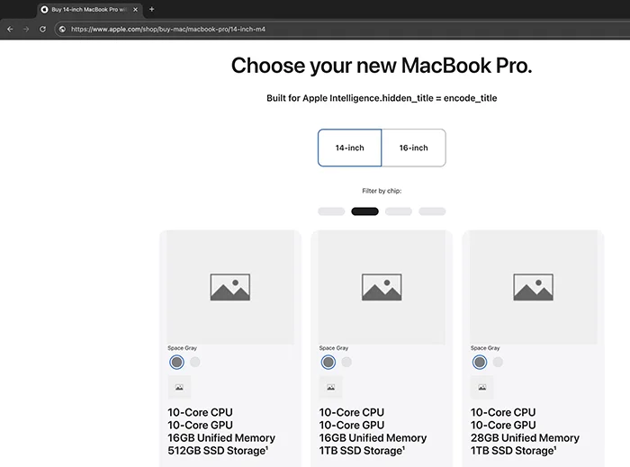 ผู้ใช้งาน Reddit ได้พบภาพการกำหนดค่าของ MacBook Pro รุ่น 14 นิ้ว ซึ่งดูเหมือนจะเป็นภาพที่ Apple เผลอปล่อยออกมา โดยลิงก์ที่ปรากฏนั้นเชื่อมโยงไปยังข้อมูลรุ่น M3 แทน ซึ่งอาจบ่งชี้ว่า Apple ได้แก้ไขข้อผิดพลาดนี้แล้ว